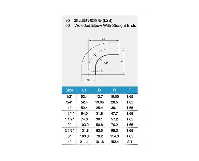 90°加長(zhǎng)焊接式彎頭(L2S)