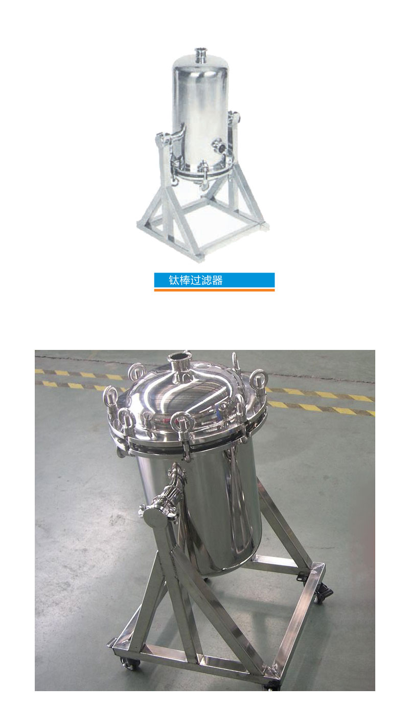 濾芯為鈦粉末燒結(jié)棒,流量大、精度高、耐高溫、耐腐蝕、五毒、無(wú)微粒脫落,使用壽命長(zhǎng)。殼體材料采用進(jìn)口316L或304,內(nèi)表面經(jīng)拋光處理,表面粗糙度Ra0.4μm,進(jìn)口關(guān)口采用卡箍式,拆洗方便。同時(shí)筒體可作180度的反轉(zhuǎn),達(dá)到徹底清洗。